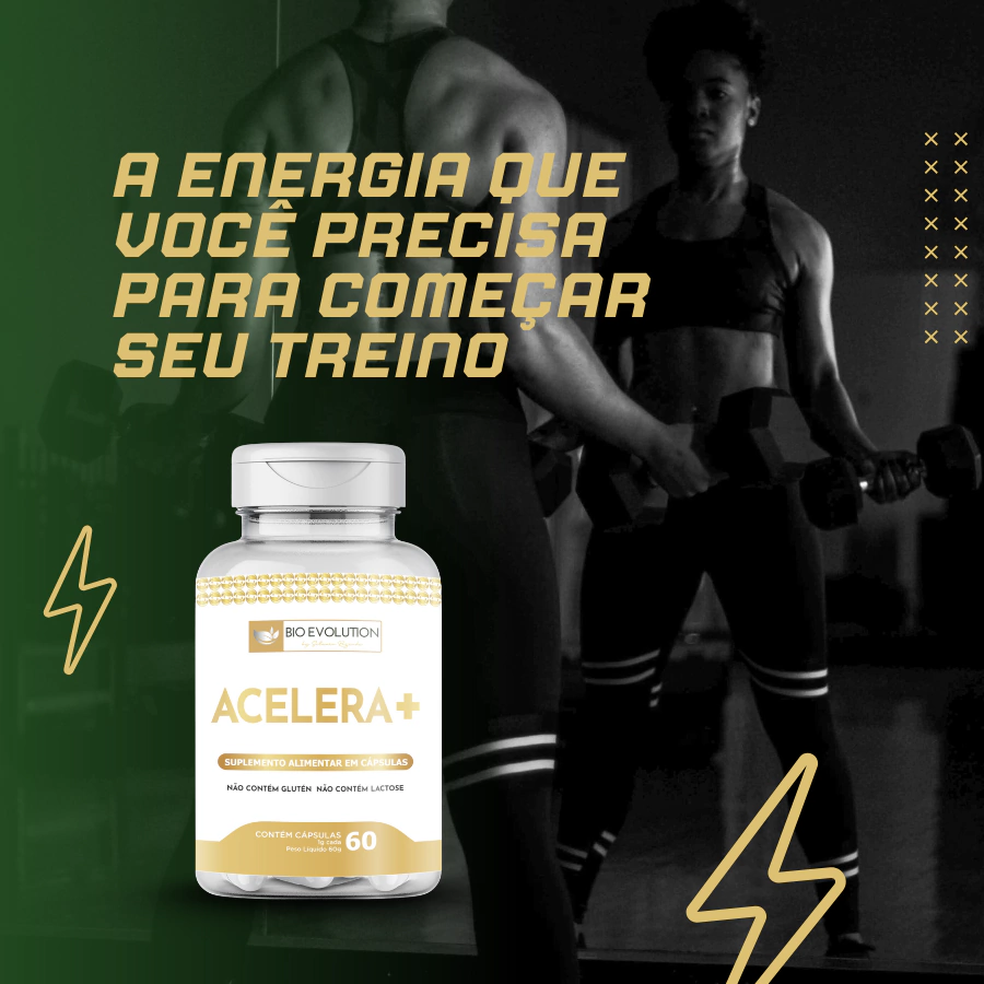 Com uma fórmula inteligente e ingredientes naturais, o Acelera+ proporciona energia extra, foco, e melhora o desempenho físico e mental. Ideal para quem deseja treinar com mais intensidade e manter o metabolismo ativo ao longo do dia.